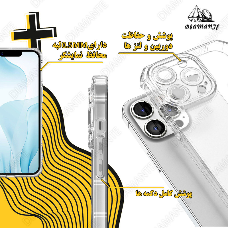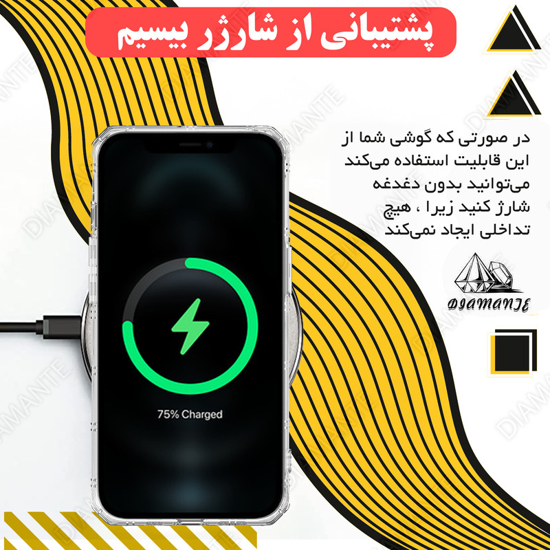 ویژگی‌های کیف و کاور : انعطاف پذیر , لبه های برجسته برای محافظت صفحه نمایش , لبه های برجسته برای محافظت دوربین , پشتیبانی از شارژ بی‌سیم , مقاوم در برابر خط و خش
