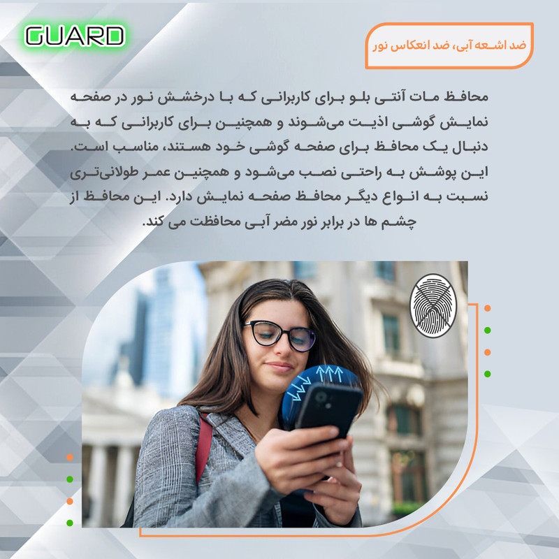 ویژگی‌ها : مقاوم در برابر چربی و اثرانگشت , قابلیت نصب آسان , جلوگیری از انعکاس نور , مقاوم در برابر خط و خش