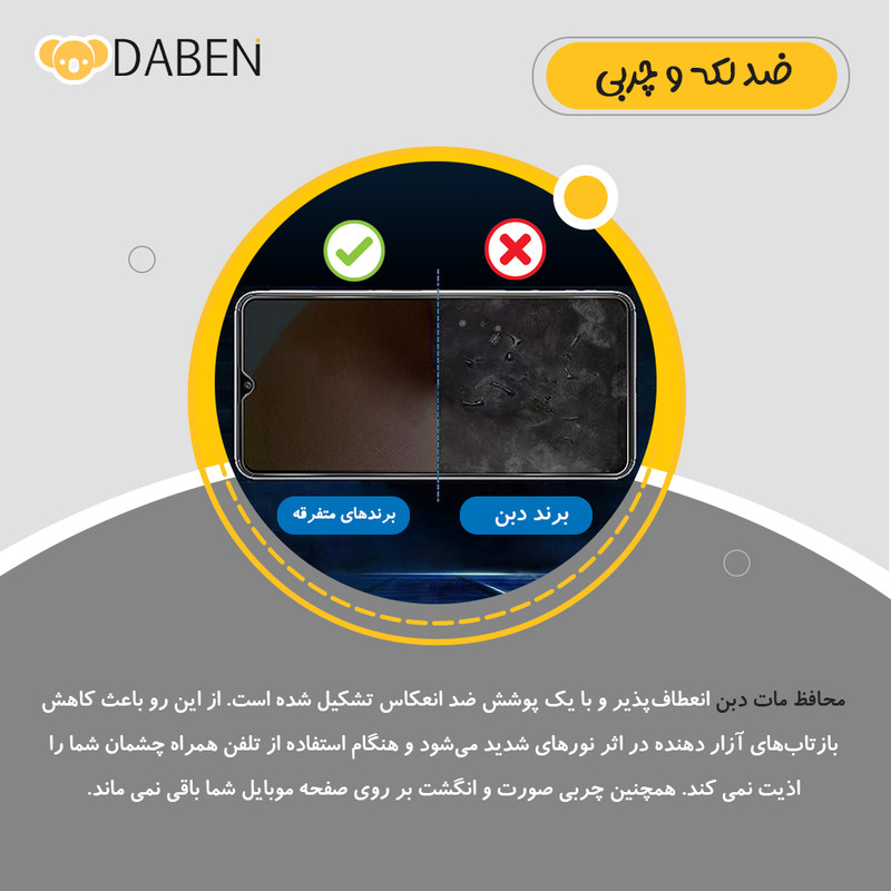 ویژگی‌ها : مقاوم در برابر خط و خش , مقاوم در برابر چربی و اثرانگشت , قابلیت نصب آسان , جلوگیری از انعکاس نور