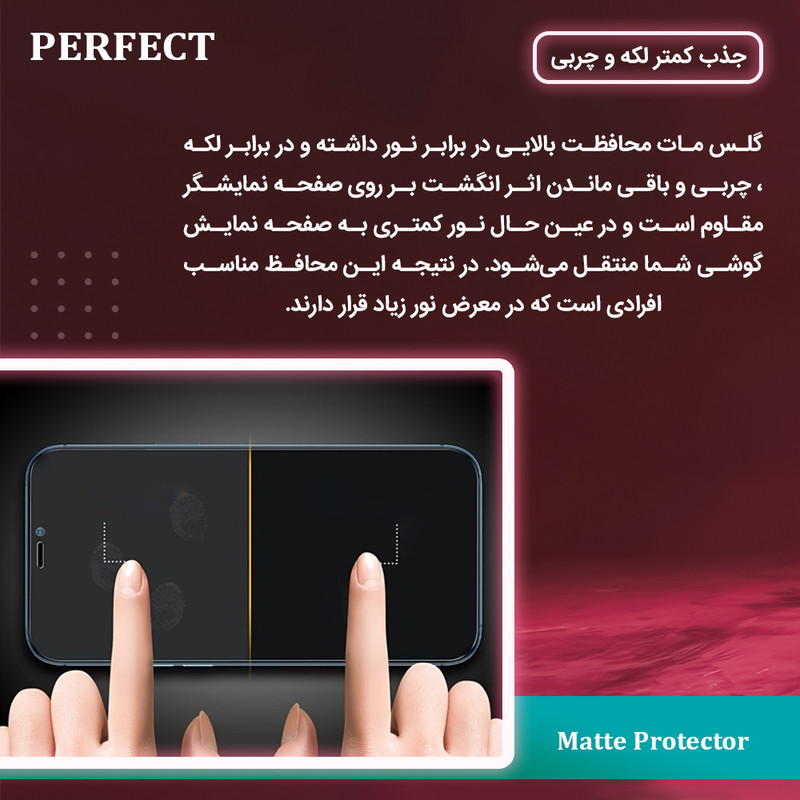 ویژگی‌ها : جلوگیری از انعکاس نور , قابلیت نصب آسان , مقاوم در برابر چربی و اثرانگشت , مقاوم در برابر خط و خش