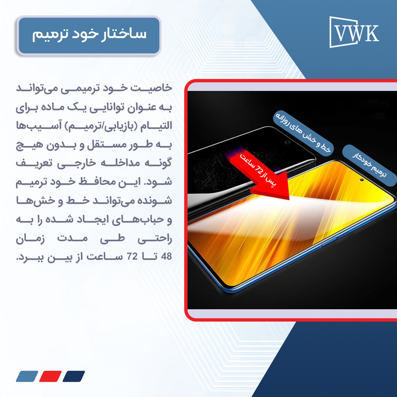 ویژگی‌ها : جلوگیری از انعکاس نور , قابلیت نصب آسان , مقاوم در برابر چربی و اثرانگشت , مقاوم در برابر خط و خش