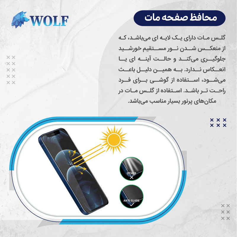 ویژگی‌ها : جلوگیری از انعکاس نور , قابلیت نصب آسان , مقاوم در برابر چربی و اثرانگشت , مقاوم در برابر خط و خش