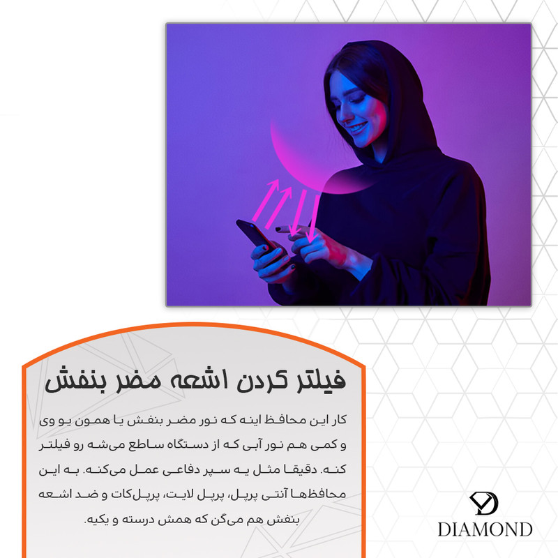 ویژگی‌ها : مقاوم در برابر خط و خش , مقاوم در برابر چربی و اثرانگشت , قابلیت نصب آسان , جلوگیری از انعکاس نور