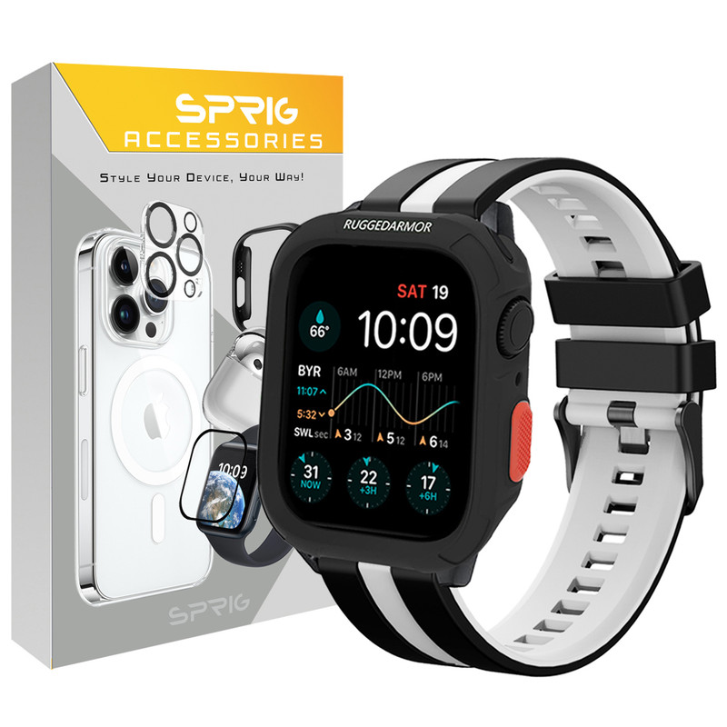 بند اسپریگ مدل Ferrer Rugged مناسب برای اپل واچ 44/45 میلی متری سری 4/5/6/7/SE/SE2/SE3 به همراه کاور