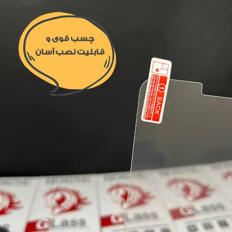 ویژگی‌ها : 9H , قابلیت نصب آسان , مقاوم در برابر چربی و اثرانگشت , مقاوم در برابر خط و خش , نصب بدون حباب