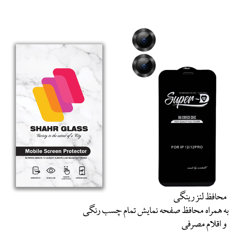 محافظ لنز دوربین شهر گلس مدل 2S-RING مناسب برای گوشی موبایل اپل iPhone 12 به همراه محافظ صفحه نمایش