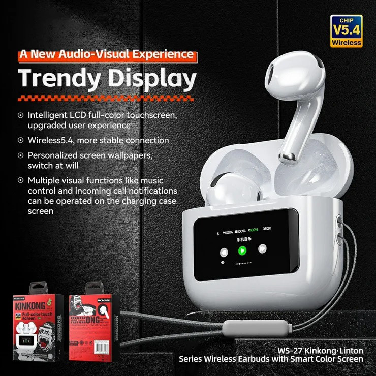 هدست بلوتوثی دبلیو کی دیزاین مدل MAH INCLUDED TWS27 DISPLAY