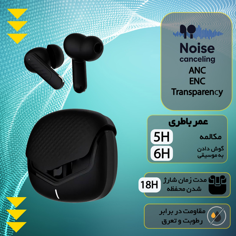 اتصال پایدار از طریق بلوتوث نسخه 5.3 ، طراحی ارگونومیک، مقاومت در برابر رطوبت از دیگر ویژگیهای کلیدی آن هستند. کیس شارژ نیز با ظرفیت مناسب و شارژ سریع، همراه خوبی برای استفاده روزمره است.