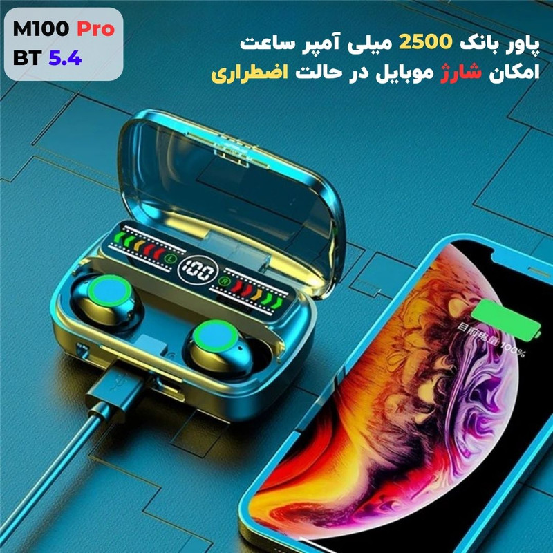 سایر مشخصات : هندزفری بلوتوثی مدل M100 PRO را 5 ساعت به شارژ اولیه بزنید.