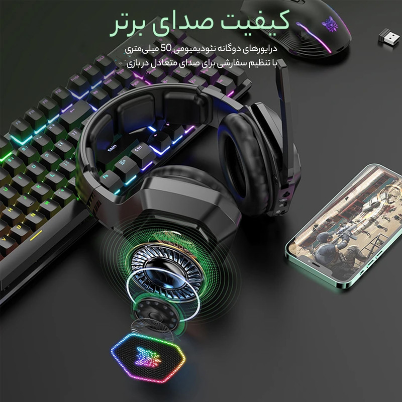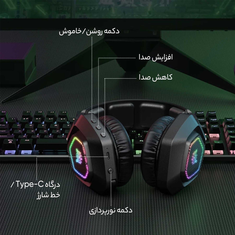 برای اتصال به دانگل دکمه روشن کردن هدست را نگه دارید تا ارتباط برقرار شود / مدت زمان استفده 20 ساعت با نورهای RGB روشن و 60 ساعت با RGB خاموش