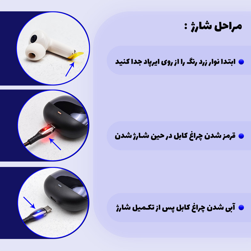 اقلام همراه هدفون، هندزفری و هدست : کابل شارژ , محفظه شارژ , پد گوشی یدکی
