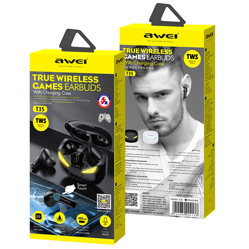 هدفون بی سیم مدل T35 محصولی از برند اوی است. این هدفون به صورتی طراحی شده تا در استفاده دراز مدت گوشتان را اذیت نکند. یکی از دلایل این ویژگی وزن سبک این مدل است. از طریق بلوتوث میتوانید این هدفون را به گوشی هوشمندتان متصل کرده و از قابلیت پخش موسیقی و مکالمه آن بهرهمند شوید. برای این مدل بلوتوث نسخه 5.0 در نظر گرفته شده و برد بلوتوث این هدفون تا 10 متر محاسبه شده است. این مدل محفظه شارژ شونده دارد و همین باعث شده تا زمان بیشتر بتوانید از این مدل استفاده کنید و این مدل به شما امکان پخش موسیقی تا 5 ساعت را میدهد و برای شارژ مجدد کافی است هدفونها را در محفظه قرار دهید و پس از 1 ساعت هدفونتان شارژ میشود.ظرفیت محفظه شارژ 400 میلی آمپر است که تا 5 بار می توانید گوشی های هندزفری را با ان شارژ مجدد کنید . این مدل به راحتی در گوش قرار میگیرد و کیفیت بالایی دارد. جنس استفاده شده برای این هدفون سیلیکون و ABS است. این هدفون توانسته گواهی IPX5 را کسب کند همین باعث شده تا نسبت به قطرات آب و رطوبت مقاوم باشد.