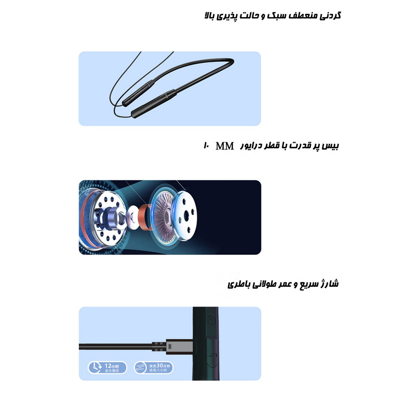 عمر باتری هدفون در حالت پخش موسیقی : 8 ساعت