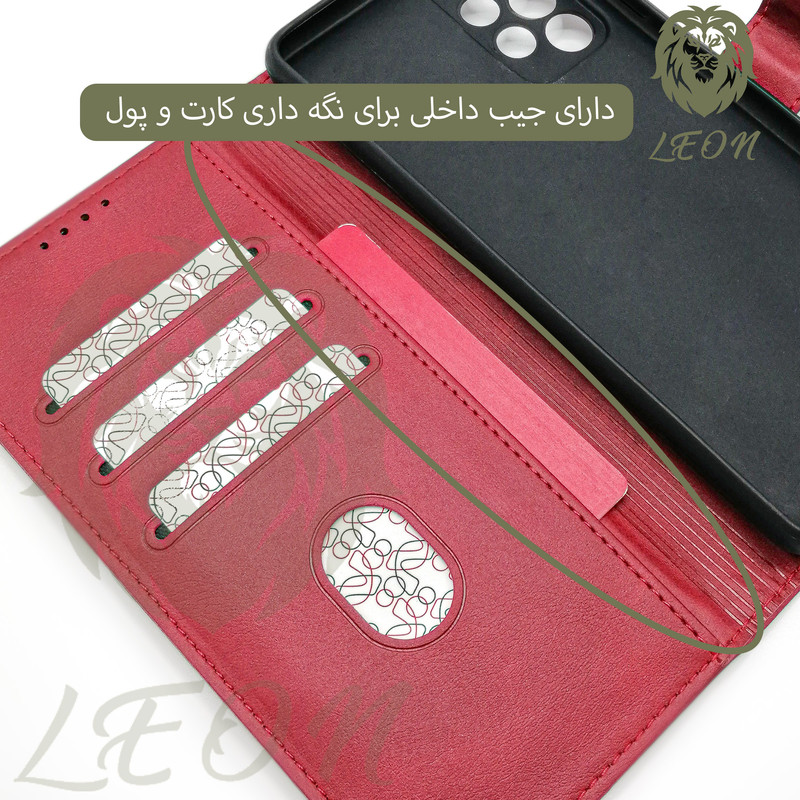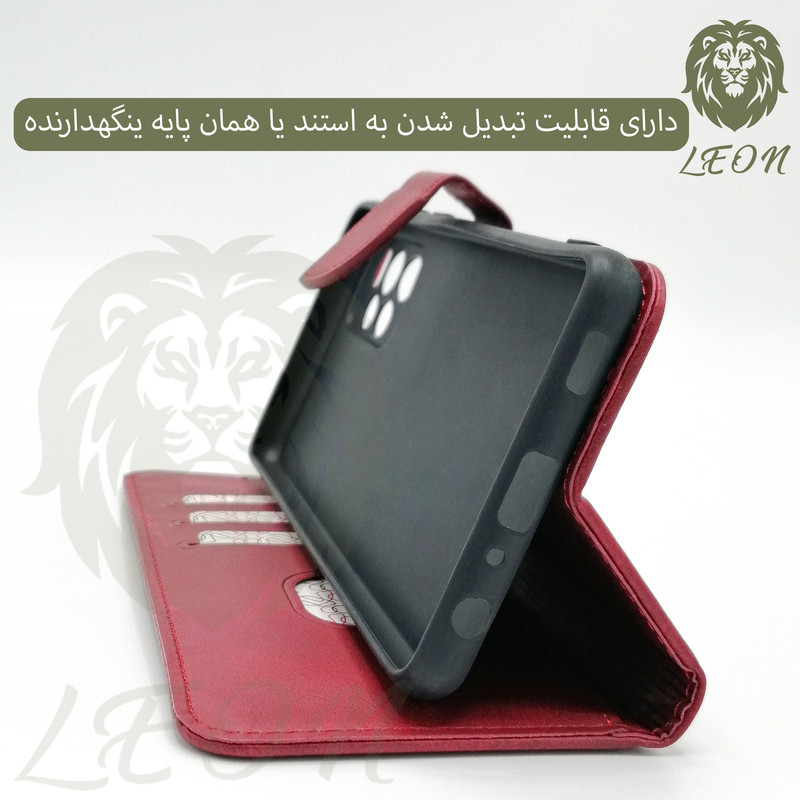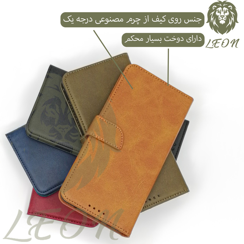 قابلیت استفاده به صورت استند دارای جای کارت و وجه نقد چرم مصنوعی با کیفیت کاربردی و مقاوم کیفیت دوخت بالا دارای قفل آهنربایی
