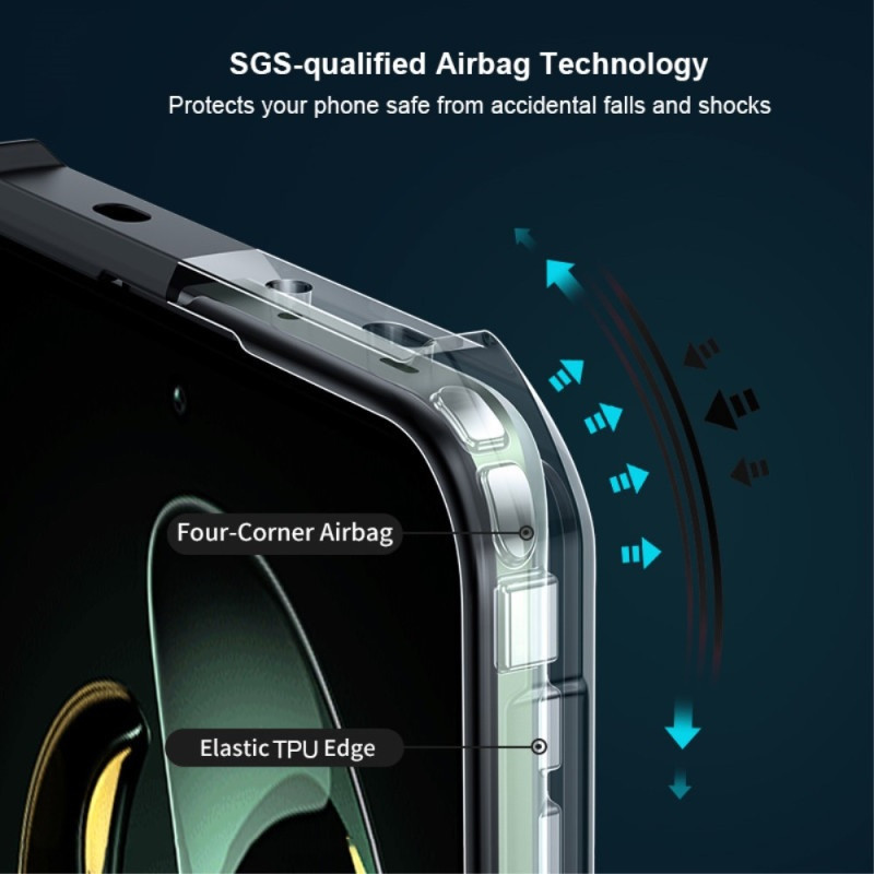 مقاوم در برابر ضربه , دارای استانداردهای نظامی مقاومت در برابر سقوط , قابلیت تبدیل شدن به استند , لبه های برجسته برای محافظت صفحه نمایش , لبه های برجسته برای محافظت دوربین , مقاوم در برابر خط و خش