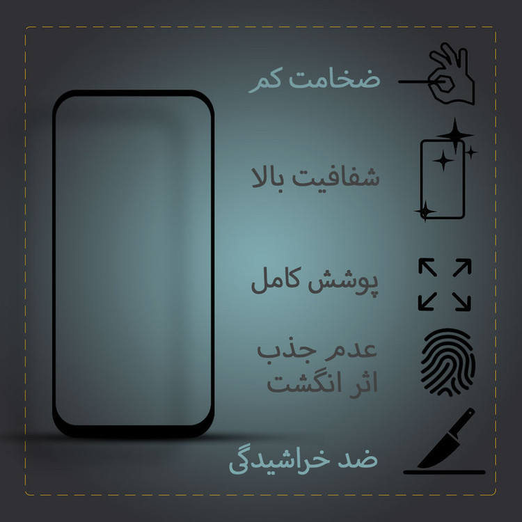 ویژگیها: قابلیت نصب آسان , جلوگیری از ایجاد خط و خش , جلوگیری از انعکاس نور , 9H , نصب بدون حباب , مقاوم در برابر چربی و اثرانگشت