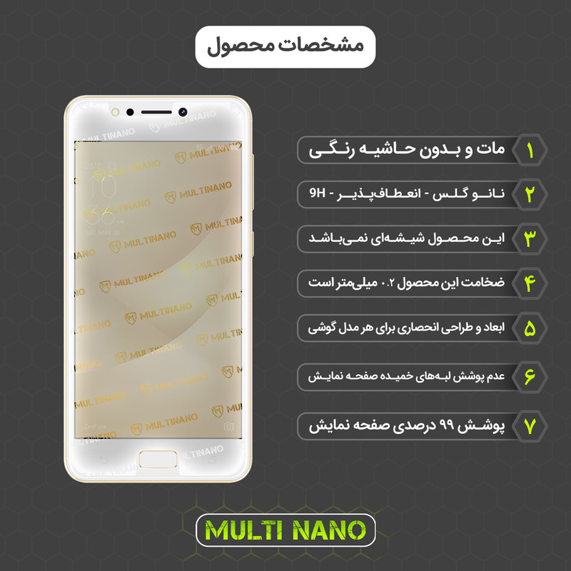 ویژگیها: 9H , جلوگیری از انعکاس نور , مقاوم در برابر چربی و اثرانگشت