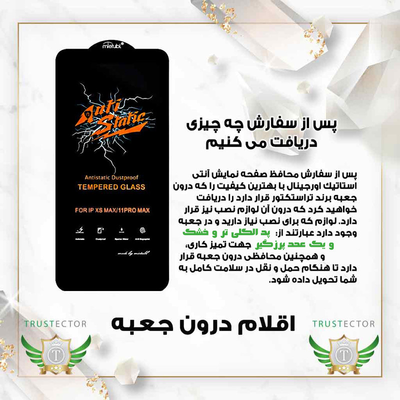امروزه گلس های متنوع با کیفیت عالی در اختیار کاربران قرار گرفته است. آنتی استاتیک یکی از مرغوب ترین و باکیفیت ترین نوع گلس به شمار می آید. لبه های این گلس دارای منحنی است و به اشیاء تیز و برنده گیر نمی کند و آسیبی به صفحه نمایش نمی رساند.از نکات کلیدی این نوع گلس، ویژگی آنتی استاتیک است که سبب می شود گرد و غبار جذب صفحه نمایش گوشی نشود. گلس محبوب آنتی استاتیک در برابر ضربات ناگهانی بسیار مقاوم و از سختی 9H برخوردار است. گلس آنتی استاتیک آب گریز و چربی گریز است و لکه های چرب و آب بر روی صفحه به راحتی از بین می رود.یکی از نکات بسیار مهم در رابطه با این گلس، جلوگیری از آسیب به چشم به هنگام استفاده از موبایل است.