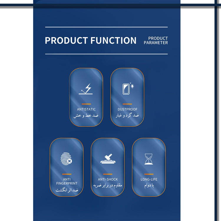 ویژگیها: 9H , جلوگیری از ایجاد خط و خش , مقاوم در برابر خط و خش , نصب بدون حباب
