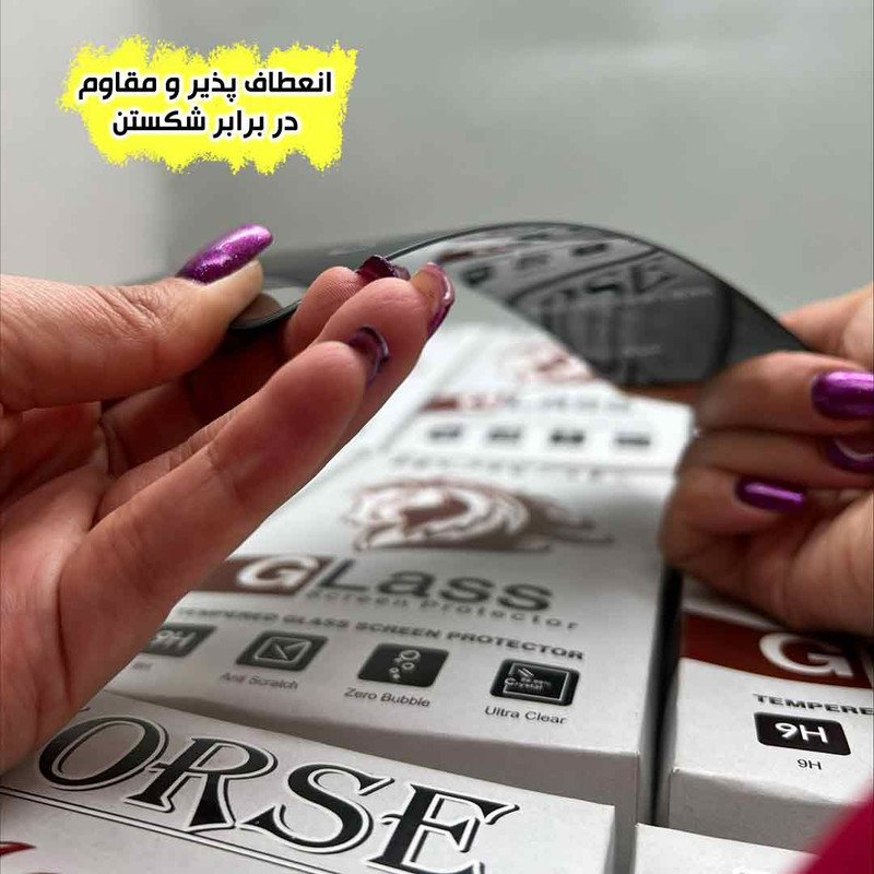 ویژگیها: 9H , جلوگیری از ایجاد خط و خش , قابلیت نصب آسان , مقاوم در برابر چربی و اثرانگشت , مقاوم در برابر خط و خش , نصب بدون حباب