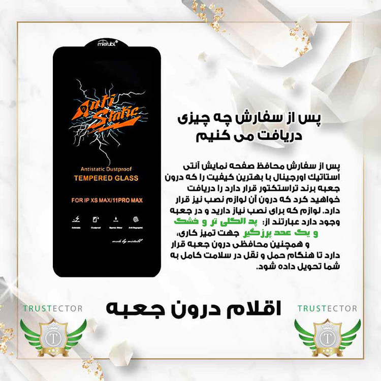 امروزه گلس های متنوع با کیفیت عالی در اختیار کاربران قرار گرفته است. آنتی استاتیک یکی از مرغوب ترین و باکیفیت ترین نوع گلس به شمار می آید. لبه های این گلس دارای منحنی است و به اشیاء تیز و برنده گیر نمی کند و آسیبی به صفحه نمایش نمی رساند.از نکات کلیدی این نوع گلس، ویژگی آنتی استاتیک است که سبب می شود گرد و غبار جذب صفحه نمایش گوشی نشود. گلس محبوب آنتی استاتیک در برابر ضربات ناگهانی بسیار مقاوم و از سختی 9H برخوردار است. گلس آنتی استاتیک آب گریز و چربی گریز است و لکه های چرب و آب بر روی صفحه به راحتی از بین می رود.یکی از نکات بسیار مهم در رابطه با این گلس، جلوگیری از آسیب به چشم به هنگام استفاده از موبایل است.