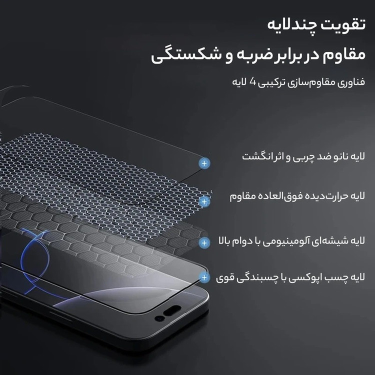 ویژگیها: 9H , قابلیت نصب آسان , مقاوم در برابر خط و خش , نصب بدون حباب