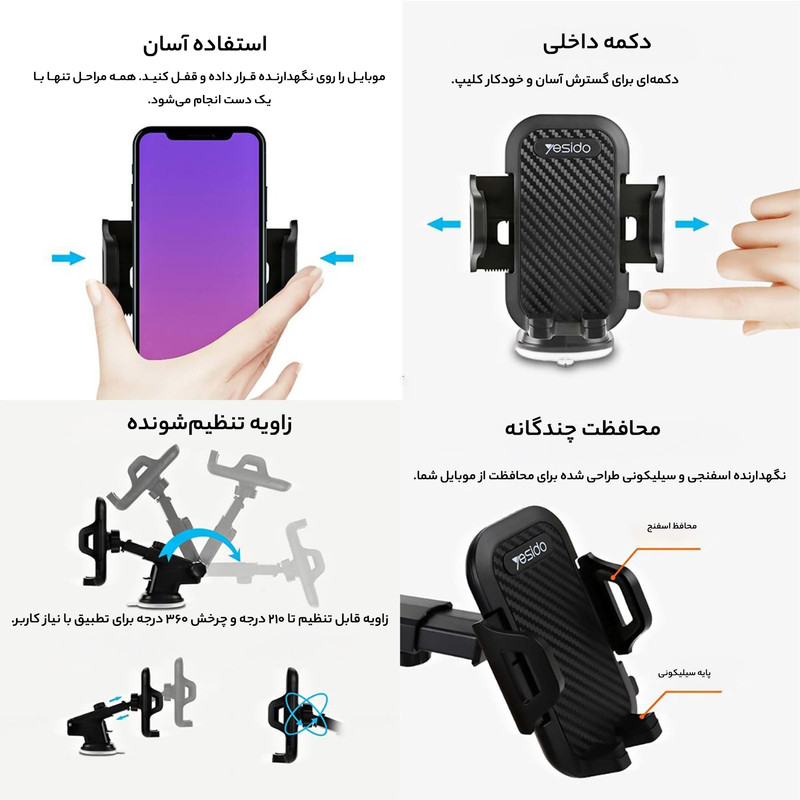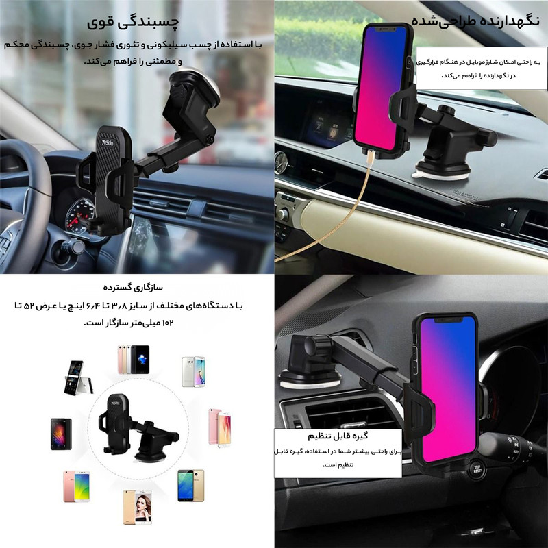 نوع پایه نگهدارنده گوشی و تبلت: مناسب برای استفاده داخل خودرو