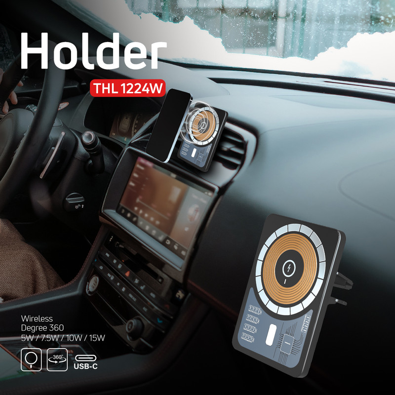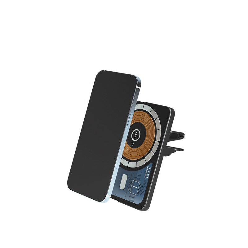 شارژ بی سیم برای موبایل حداکثر تا 15 وات / اتصال به صورت آهنربایی / قابلیت اتصال از طریق پورت USB Type - C / اتصال به دریچه کولر