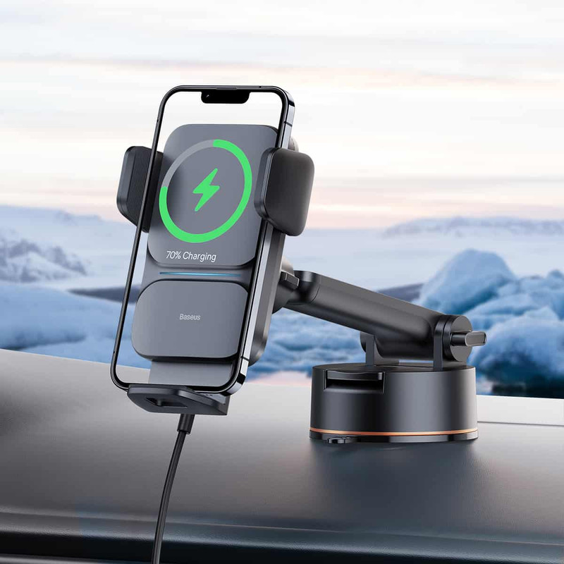 بدون نیاز به جداسازی قاب محافظ | امکان چرخش 360 درجه سری هولدر | 15 وات توان برای شارژدهی بیسیم و سریع | مناسب انواع موبایلهای تا 7.5 اینچی | سازگار با سیستم عاملهای اندروید و iOS