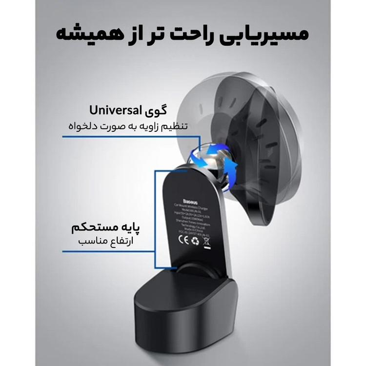 امکان استفاده روی داشبورد و دریچه کولر شارژر وایرلس با توان حداکثر 15 وات دارای 16 آهنربا برای جذب بهتر