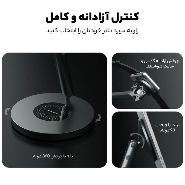 قابل تنظیم در 3 حالت مختلف جهت استفاده در محیط های مختلف مغناطیس فوق العاده قوی تا تحمل وزن بالغ بر 2 کیلوگرم امکان جرخش 360 درجه در قسمت پایه و 90 درجه برای تبلت و گوشی همراه