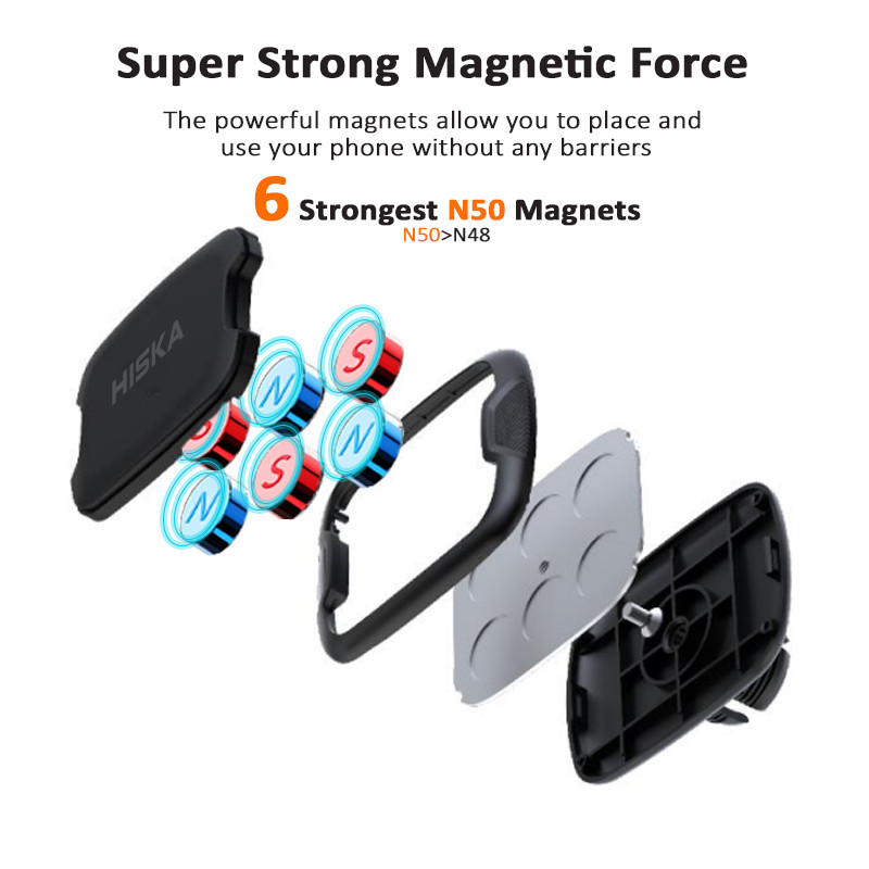 دارای 6 مگنت N50 برای اتصال قوی تر برای گوشی و تبلت دارای بازوهای تلسکوپی و تنظیم در زوایای مختلف