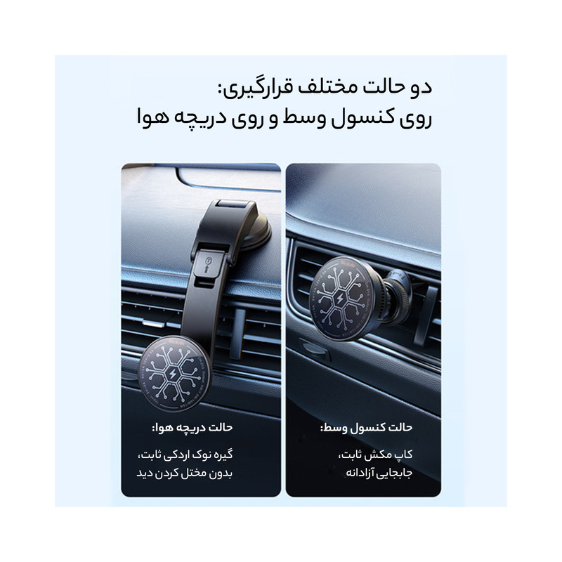 چند کاربرد مختلف: هولدر، شارژر وایرلس و فن خنک کننده گیمینگ | قابلیت شارژ وایرلس 15 وات MagSafe | دارای آهنربای قوی 12N