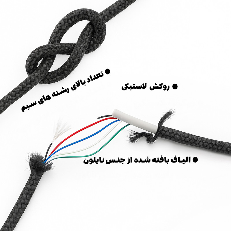روکش دو لایه از الیاف نایلون و لاستیکی استحکام و انعطاف پذیری بالا قابلیت شارژ سریع دارای بند نگهدارنده