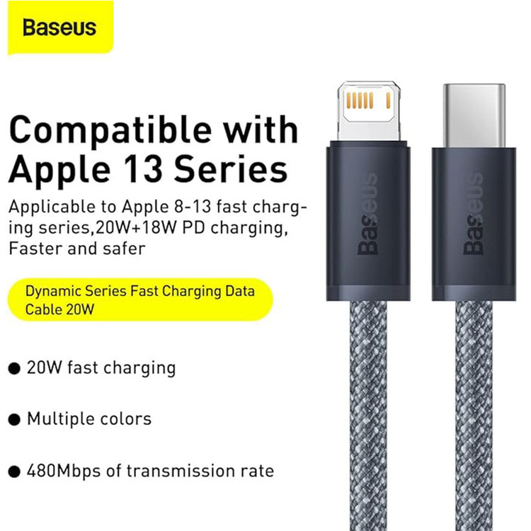 کابل لایتنینگ به تایپ سی فست شارژ باسئوس Baseus Dynamic Series Type-C to iP 20W 2m CAD0001 به خوبی امکان این را به شما میدهد تا بتوانید توسط آن گوشی و دیگر وسایل خود را شارژ کنید و برای این کار از سرعت بالایی نیز برخوردار باشید. حداکثر توان خروجی این کابل 20 وات است و حداکثر شدت جریان خروجی آن هم 2.4 آمپر است. با این توان و به کمک یک آداپتور مناسب شما میتوانید گوشی و وسایل خود را که از این توان پشتیبانی میکنند، با سرعت بالا و قابل قبولی شارژ کنید. علاوه بر این به دلیل استفاده از چیپ هوشمند درون این کابل، شدت جریان و ولتاژ با توجه به وضعیت گوشی شما وارد آن میشود که برای سلامتی باتری بسیار بهتر است.