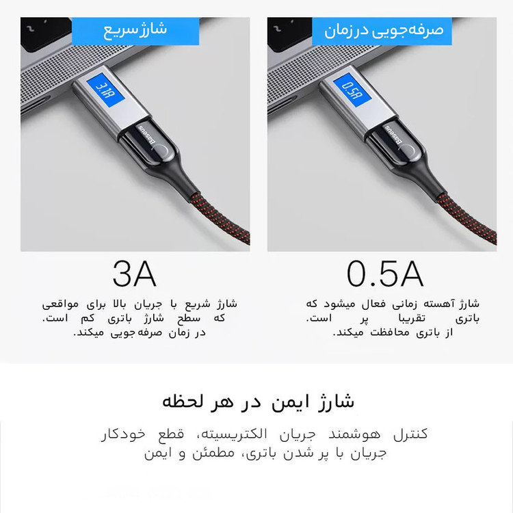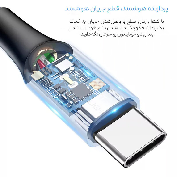 دارای چراغ LED روی کابل برای نشان دادن شارژ کامل ، شارژ سریع و شارژ معمولی