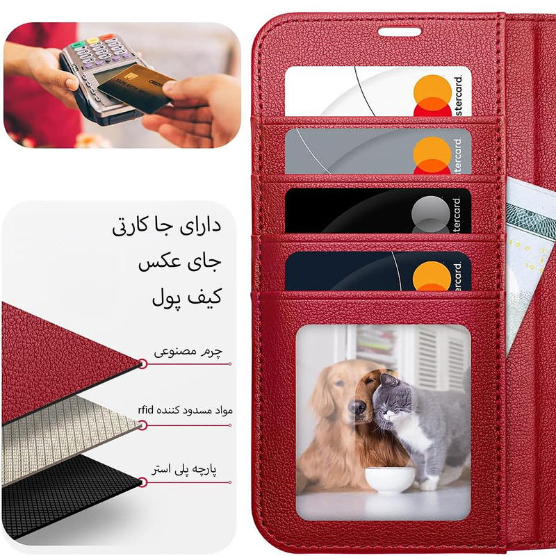قابلیت تبدیل شدن به استند , دارای محفظه نگهداری کارت , دارای قفل آهنربایی , لبه های برجسته برای محافظت دوربین , لبه های برجسته برای محافظت صفحه نمایش , پشتیبانی از شارژ بیسیم , مقاوم در برابر خط و خش