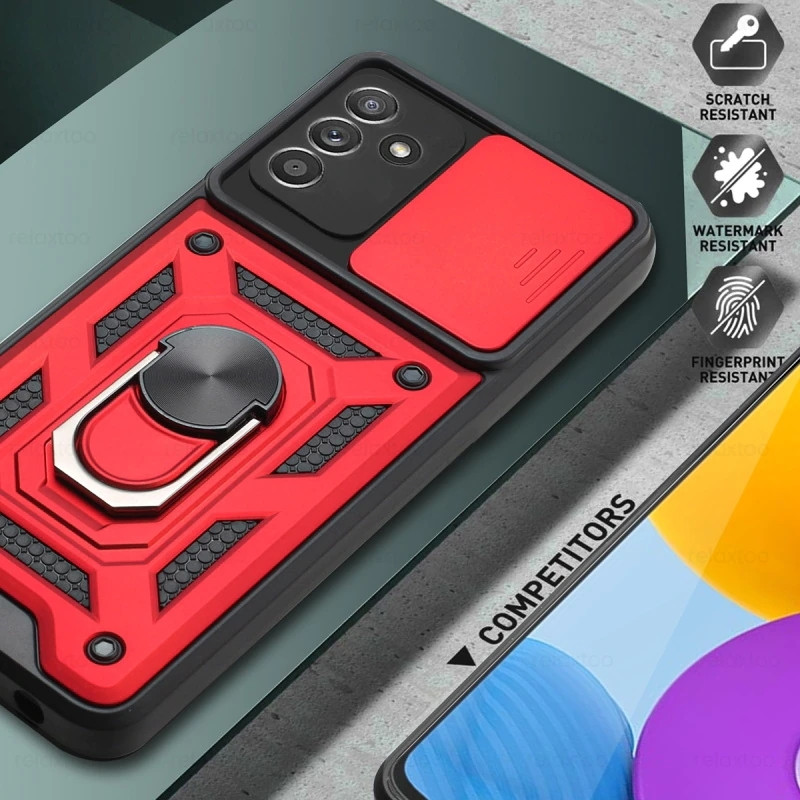 مقاوم در برابر ضربه , مقاوم در برابر آب , دسترسی آسان به درگاه ها , قابلیت تبدیل شدن به استند , لبه های برجسته برای محافظت صفحه نمایش , لبه های برجسته برای محافظت دوربین