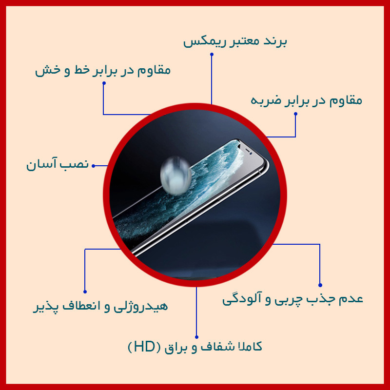 برند معتبر ریمکس – یکدست و بدون حاشیه رنگی - خودترمیم - تشخیص سریع اثر انگشت - سرعت تاچ بالا - نصب آسان - کیفیت بالا - کاملا شفاف - قبل از نصب کلیپ آموزشی را در اینترنت مشاهده فرمایید.
