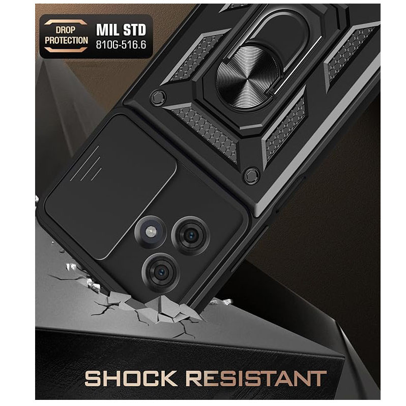 دارای استانداردهای نظامی مقاومت در برابر سقوط , قابلیت تبدیل شدن به استند , لبه های برجسته برای محافظت صفحه نمایش , لبه های برجسته برای محافظت دوربین , پشتیبانی از شارژ بیسیم , مقاوم در برابر خط و خش , دارای پوشش نرم داخلی , مقاوم در برابر ضربه