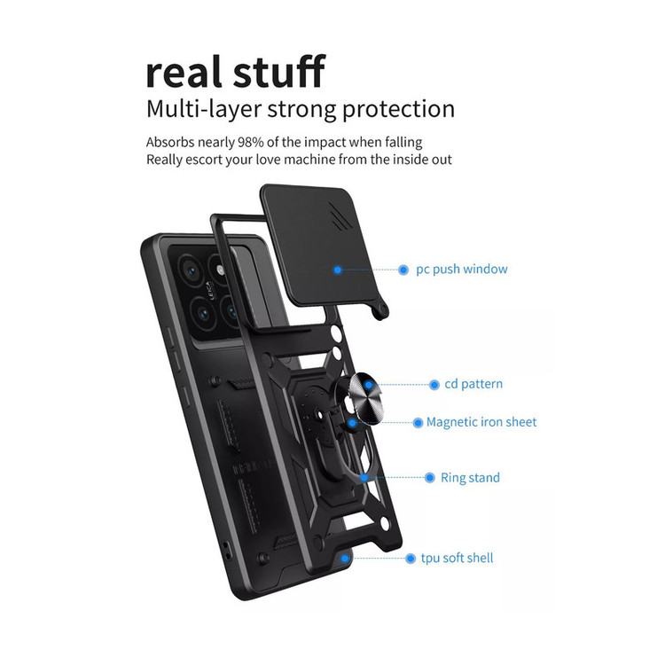 مقاوم در برابر ضربه , دارای استانداردهای نظامی مقاومت در برابر سقوط , قابلیت تبدیل شدن به استند , لبه های برجسته برای محافظت صفحه نمایش , لبه های برجسته برای محافظت دوربین , مقاوم در برابر خط و خش , پشتیبانی از شارژ بیسیم , آویز , پاپ سوکت