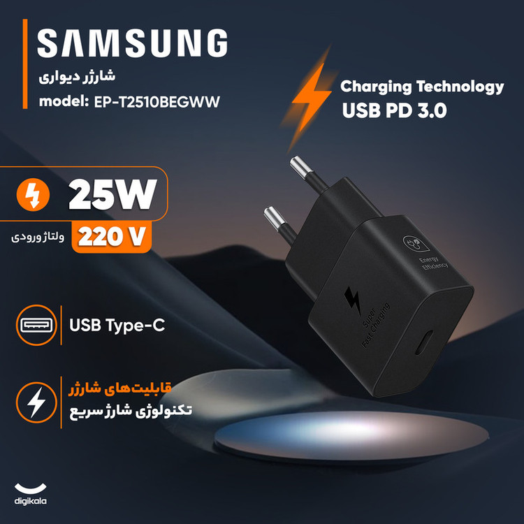 شارژر دیواری 25 وات سامسونگ مدل EP-T2510BEGWW