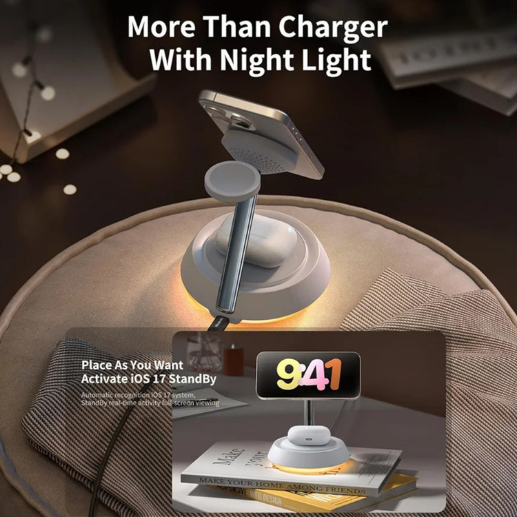 داک شارژر بی سیم مک دودو مدل CH-4952 برای شارژ بیسیم انواع گوشی با قابلیت مگ سیف، ایرپاد و ساعتهای هوشمند کاربرد دارد. چراغ نئونی این شارژ به کار کردن با آن در شب کمک میکند.