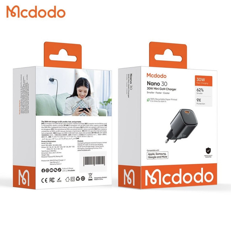 شارژر دیواری 30 وات مک دودو مدل Nano 30