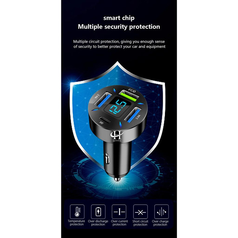 شارژر فندکی هارمن مدل PD4QC3 یکی از قدرتمندترین و با کیفیت ترین شارژرهای فندکی پر فروش میباشد این شارژر دارای 4 پورت خروجی که پورت آن USB PD برای کابل گوشی های موبایل جدید که سر آن لایتنینگ و سر دیگر آن تایپ سی بوده مانند گوشی های موبایل اپل ایفون 14 پرو و 14 پرومکس و 13 پرومکس و غیره و یا گوشی های موبایل سامسونگ که هر دوسر آن تایپ سی TYPE-C یا به اصطلاح USB-C میباشد مانند S23 ULTRA و NOTE 20 ULTRA و S21FE و غیره پورت دیگر آن QC3 میباشد که برای گوشی های با شارژ سریع (فست شارژ) مناسب میباشد که بهتر از جهت استفاده از قابلیت فست شارژ کابل موبایل نیز بایستی قابلیت فست داشته باشد جهت بدنه این شارژر فندکی از پلاستیک خشک ABS میباشدکه کیفیت ساخت آن از شارژرهای فندکی برند الدینیو و باسئوس و انکر وریمکس و یسیدو و جوی روم با کیفیت تر میباشد دو پورت دیگر آن با شدت جریان خروجی تا 2.4 آمپر میباشد که هوشمند بوده و به میزان نیاز موبایل از خود خروجی مناسب ارسال میکند این شارژر دارای یک فیوز مناسب جهت جلوگیری از ولتاژ بیش از حد بوده و مانع از آسیب به موبایل شما میشود همچنین دارای یک مدار هوشمند جهت جلوگیری از نوسانات ولتاژ در خودروهای بی کیفیت و یا خودروهایی که مشکل برق دارند میشود شارژر فندکی هارمن تنها شارژر فندکی میباشد که هم برای خودرو سواری هم کامیون و هم اتوبوس از 12 ولت تا 24 ولت کاربرد دارد شارژر فندکی هارمن مدل PD4QC3 دارای یک نمایشگر جهت نمایش ولتاژ خروجی شارژر میباشد