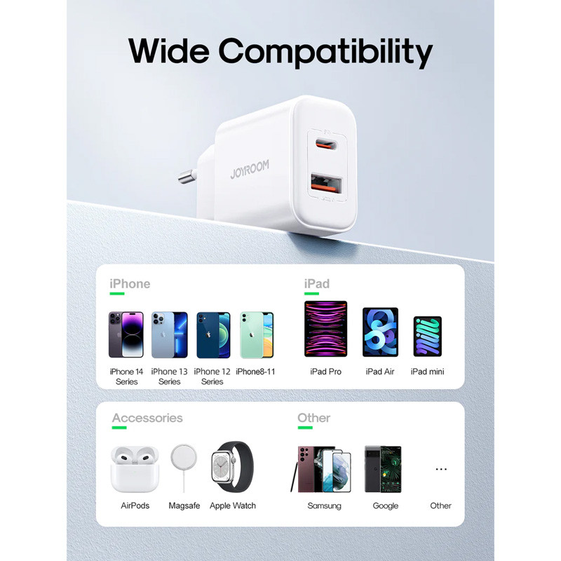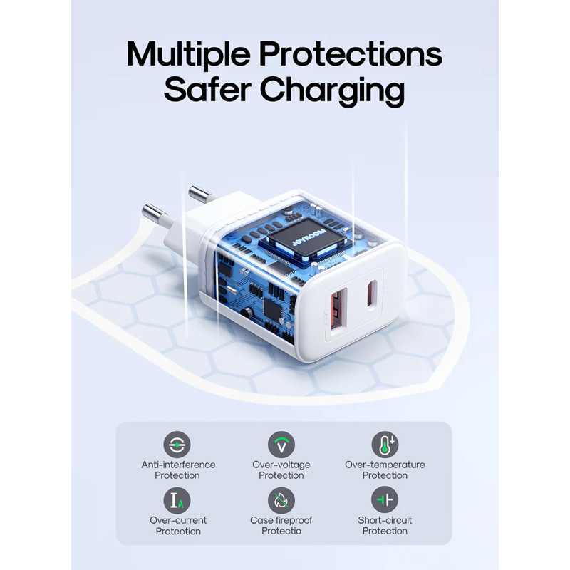 گاهی اوقات دوست داریم همزمان هم گوشی و هم هندزفریمان را همزمان شارژ کنیم و فقط یک پریز داریم.مثلا در جایی مثل قطار یا در اتاق. شارژ لوازم دیجیتال یکی از مشکلات اصلی کار با دستگاههای هوشمند است در گاهی مواقع تعداد زیادی شارژر و کابل شارژ وجود دارد اما به دلیل کمبود پریز برق نمیتوان همزمان چند دستگاه را شارژ کرد.به همین دلیل کاربران سراغ آداپتورهایی با چند خروجی میروند. همین خرید شارژر دیواری 20 وات جوی روم مدل JR-TCF05 راهحلی برای این مشکلات است.آداپتورهای فستشارژ زیادی وجود دارند که چندین خروجی دارند اما آداپتور فست شارژ جوی روم با دو پورت خروجی و امکان شارژ همزمان دو دستگاه یکی از بهترین پیشنهادات ما برای خرید شارژر دیواری سریع است.این شارژر دارای اتصالات سازگار با پریز برق ایرانی است.اندازه آن کوچک است اما دارای قدرت بسیار بوده و با چندین پروتکل شارژ سریع سازگار است.در هر زمان که دوست دارید دو گوشی هوشمند یا یک گوشی و یک گجت هوشمند دیگر را به آن متصل کنید.شارژر دیواری 20 وات جوی روم مدل JR-TCF05 دارای تکنولوژی شارژ سریع است و تمام دستگاههایی که از این تکنولوژی پشتیبانی میکنند را با سرعت بسیار بالایی شارژ خواهد کرد.حداکثر جریان خروجی شارژر برابر با 3A است.بدنه این شارژر بسیار کوچک بوده و قابل حمل است. میتوانید این شارژر را همراه خود در هر مکان حمل کرده و از آن استفاده کنید.با شارژر دیواری 20 وات جوی روم مدل JR-TCF05 میتوانید دو دستگاه هوشمند را با جریان و قدرت کافی شارژ کنید و زمان شارژ کوتاهتری را تجربه کنید.شارژر دیواری 20 وات جوی روم مدل JR-TCF05 با استفاده از یک چیپ هوشمند از ورود جریان اضافه به دستگاه جلوگیری میکند و اجازه نمیدهد به دستگاه متصل صدمهای وارد شود.بدون نگرانی دستگاههای مختلف را به این شارژر متصل کنید چرا که این آداپتور دارای هسته هوشمند است و دستگاههای مختلف را شناسایی میکند تا بتواند به طور مناسب آنها را شارژ نماید. همچنین در زمان شارژ سریع از هر گونه صدمه ناشی از اختلالات و نوسانات برق به دستگاه هوشمند جلوگیری میکند.شارژر دیواری 20 وات جوی روم مدل JR-TCF05 با تمامی گوشی ها،تبلت ها،آیپد ها،هنذفری ها،ساعت های هوشمند،پاوربانک ها و ....... سازگار است و به بهترین شکل ممکن از آنها پشتیبانی میکند.