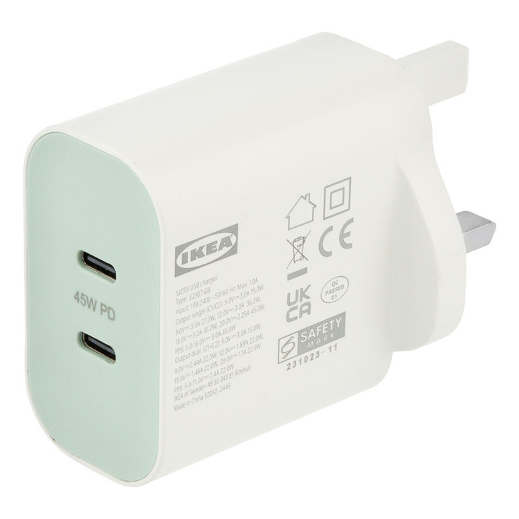 شارژر دیواری 45 وات دو پورت ایکیا مدل SJÖSS