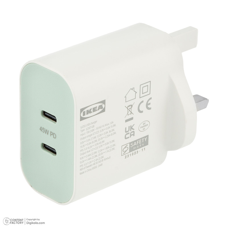 شارژر دیواری 45 وات دو پورت ایکیا مدل SJÖSS