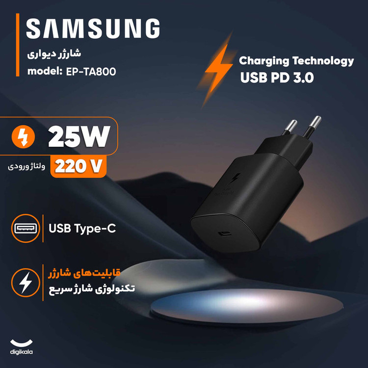 شارژر دیواری 25 وات سامسونگ مدل EP-TA800