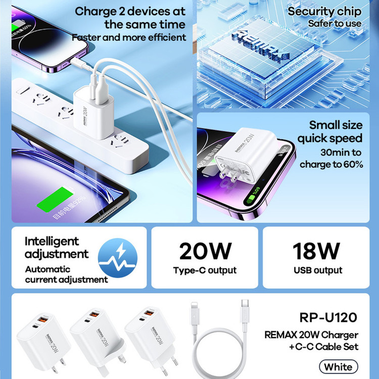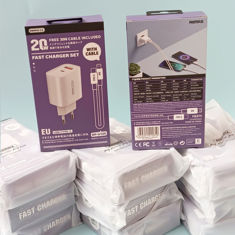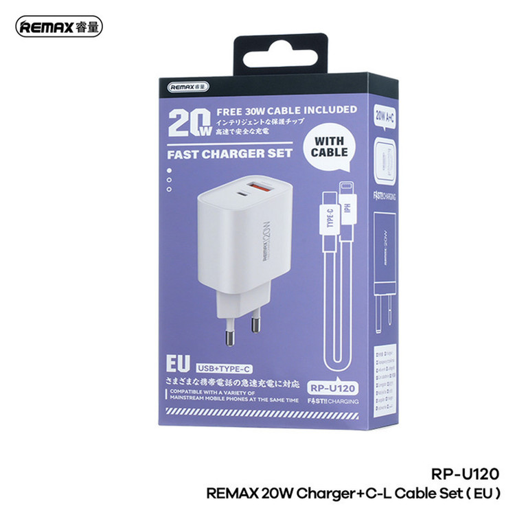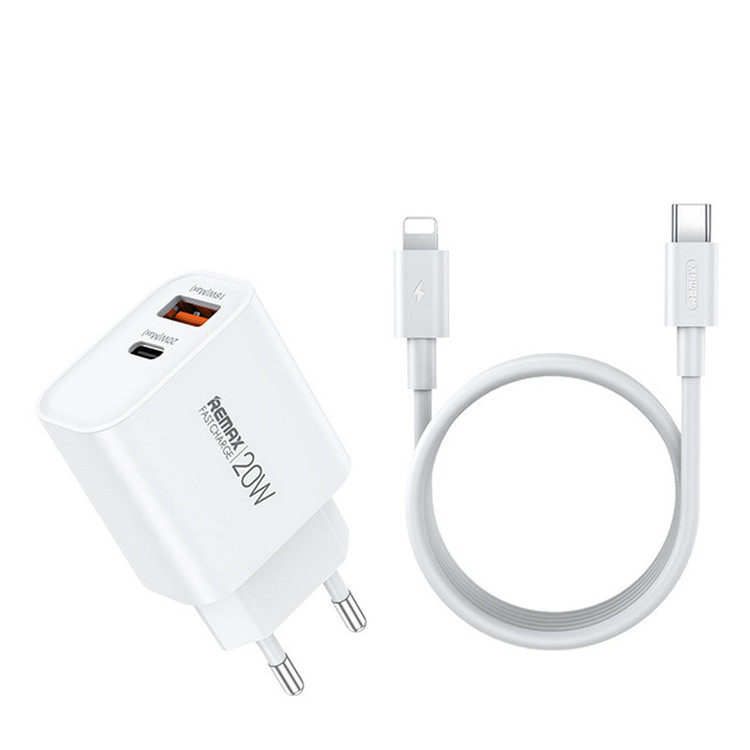 شارژر دیواری 20 وات ریمکس مدل RP-U120 EU به همراه کابل لایتنینگ